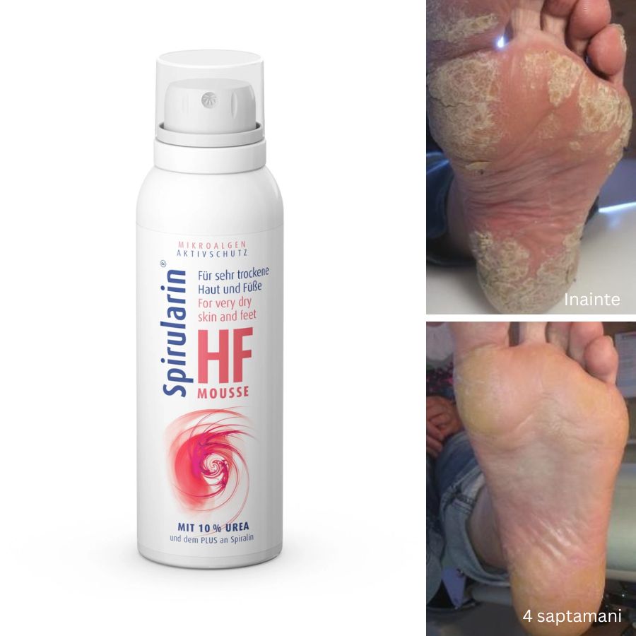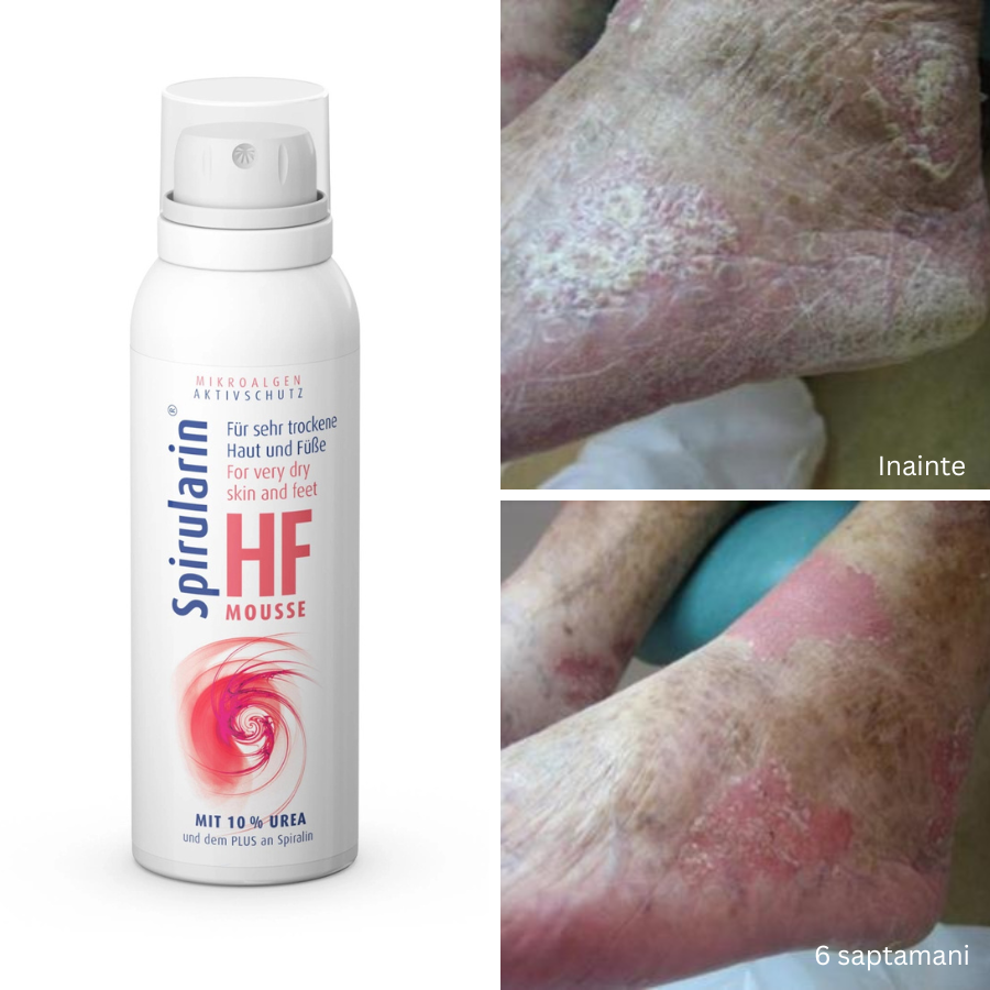Notă pentru diabetici: Spirularin ® HF Mousse susține pielea care are adesea o circulație sanguină deficitară. În plus, creșterea nivelului de hidratare oferită de uree și Spiralin® sustine pielea problematica.